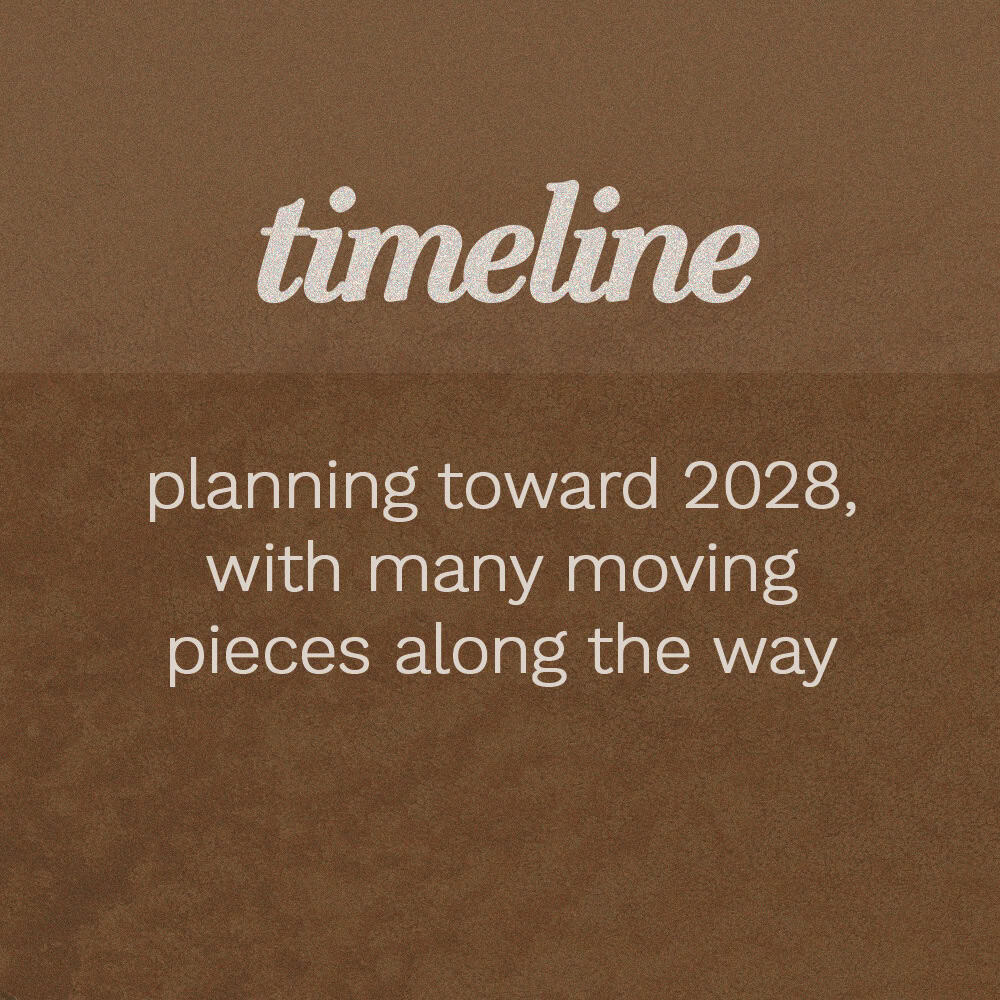 A realistic target for moving into 8500 Orchard Road is Spring or Summer of 2028 (the Lord willing).